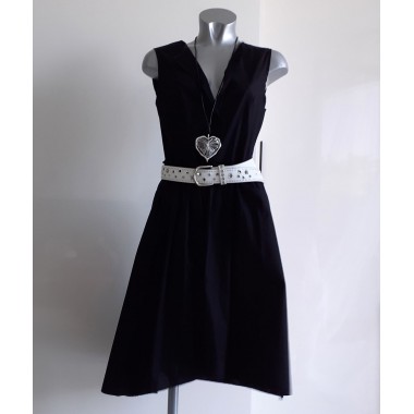 Abitino corto in tessuto lucido simile al raso, tinta unita con pois neri, spalline sottile, scollo morbido molto profondo che mette in risalto il decolleté, schiena completamente nuda con elastico. Abito sexy ed audace perfetto per una serata speciale. Taglia unica.
