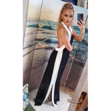 Abito lungo da sera tinta unita con ampia scollatura a V molto sexy, spalline sottili regolabili, vestibilità morbida, spacchi laterali. Taglia unica