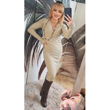 Abito longuette misto lana con scollo a V profondo davanti e sul retro con spallina gioiello, vestibilità morbida. Taglia unica