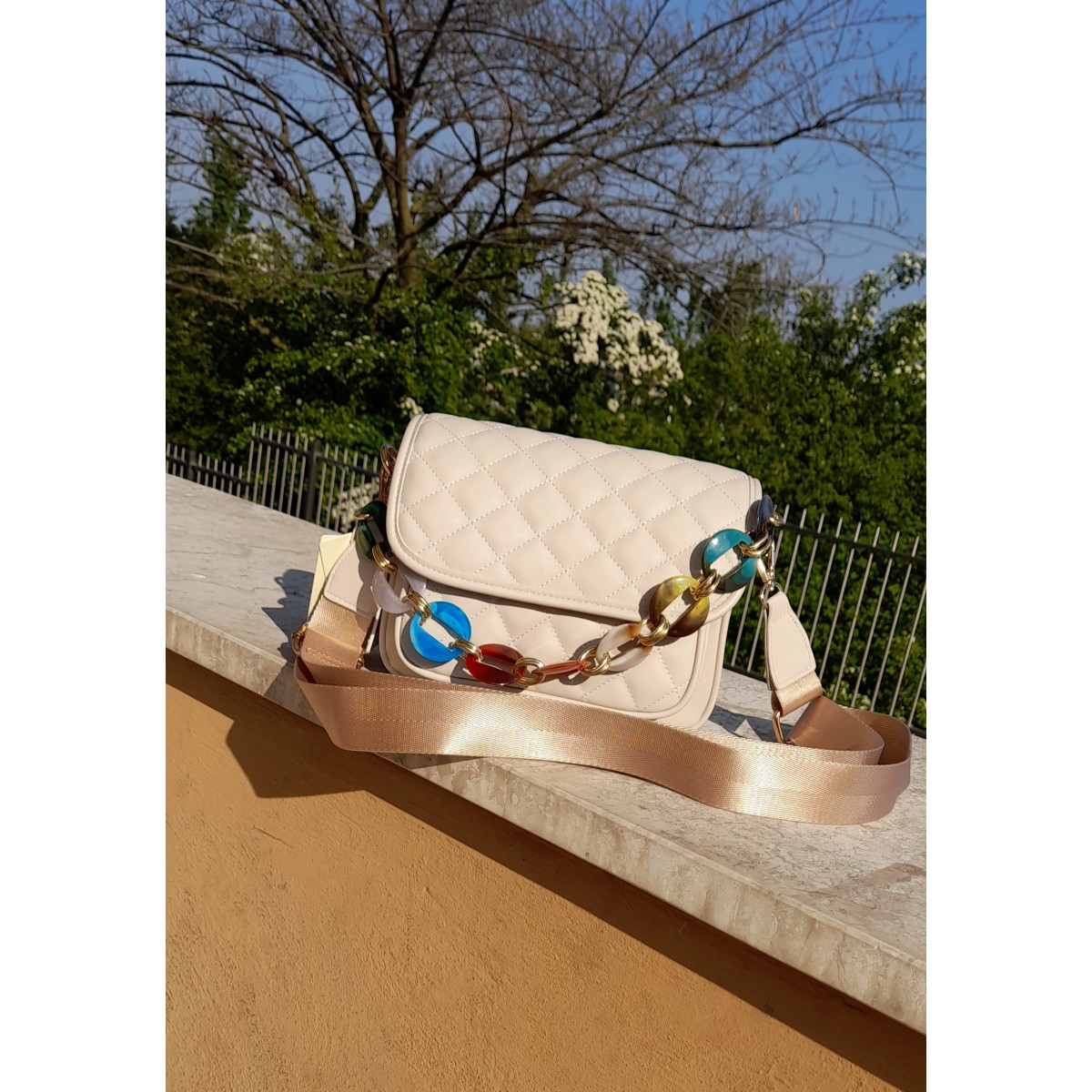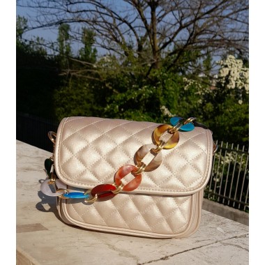 Mini borsetta con catena colorata | Cindy Mini borsetta trapuntata in similpelle a tracolla con catena colorata, piccola ma con l'attitudine di un accessorio pieno di carattere e personalità. Disponibile in diversi colori moda.