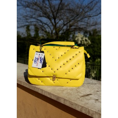 Mini borsetta a tracolla e a mano con piccole borchie dorate, piccola ma con l'attitudine di un accessorio pieno di carattere e personalità. Disponibile in diversi colori moda.