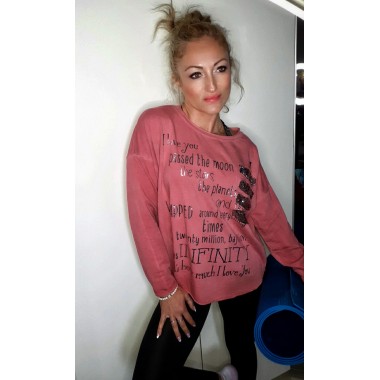 Blusa sportiva con cappuccio | Nicole Blusa sportiva con cappuccio in seta cotta, stampa sul davanti, vestibilità morbida. Taglia unica