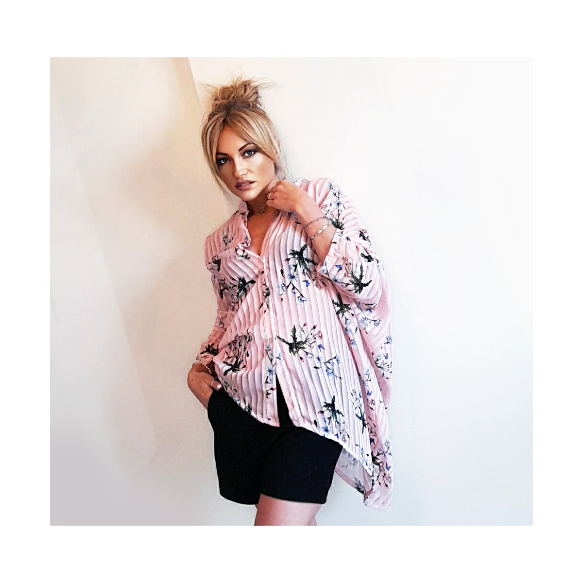 Camicia a pieghe, fantasia floreale con maniche lunghe, vestibilità morbida. La particolarità di questa camicia è nel...