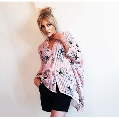 Camicia a pieghe, fantasia floreale con maniche lunghe, vestibilità morbida. La particolarità di questa camicia è nel taglio asimmetrico che rende il modello unico ed originale. Taglia unica