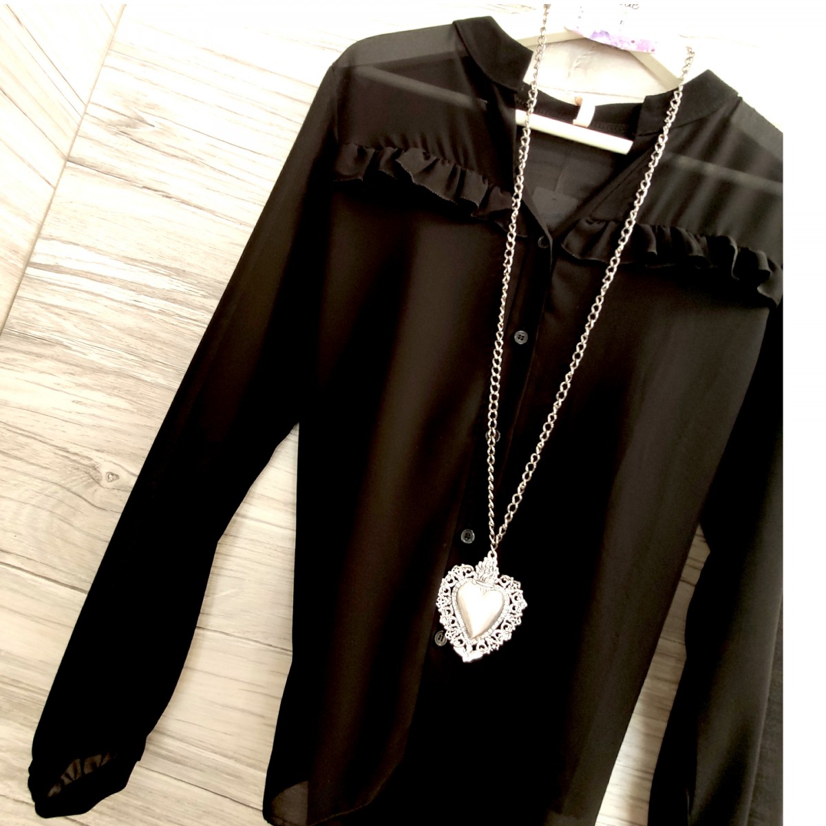 Camicia nera con rouge | Caterina Camicia nera a maniche lunghe in tessuto leggero con rouge, scollo a V profondo, vestibilità slim. Modello unico nel suo genere, molto chic ed elegante. Taglia unica