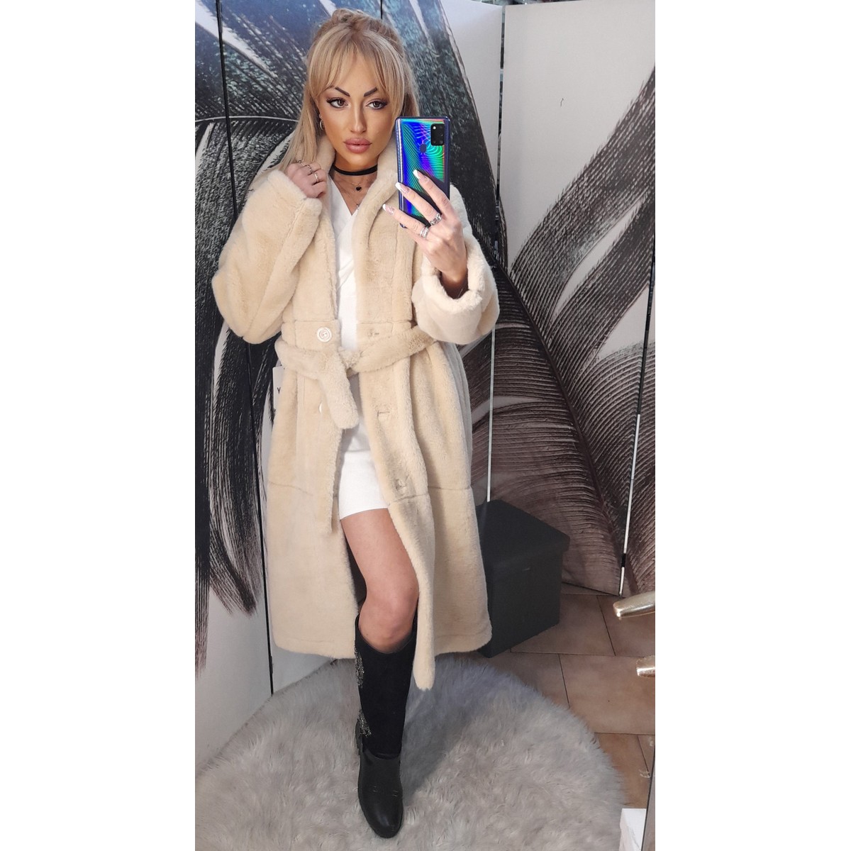 Eco pelliccia new teddy | Susy Nuovo teddy eco pelliccia lunga sciancrata con tasche laterali e cintura in vita tono su tono, vestibilità morbida. Taglia unica