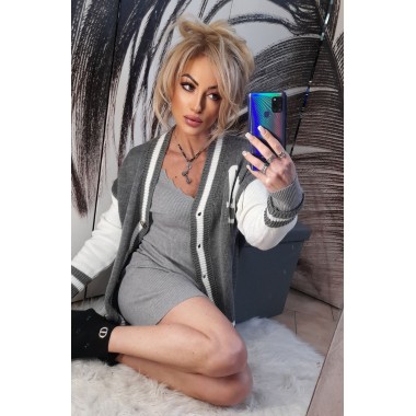 Mini cardigan a righe | Liana Mini cardigan a righe colorate in misto lana con scollo profondo a V e bottoni gioiello, vestibilità slim. Taglia unica
