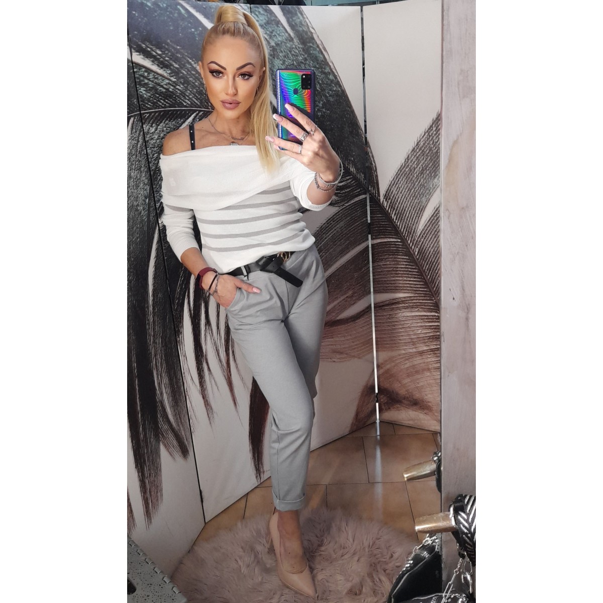 Tuta elegante e chic, fantasia geometrica stile Fendi composta da tre pezzi: canotta, pantalone slim e cardigan lungo senza allacciatura con cintura in vita tono s tono. Taglia unica