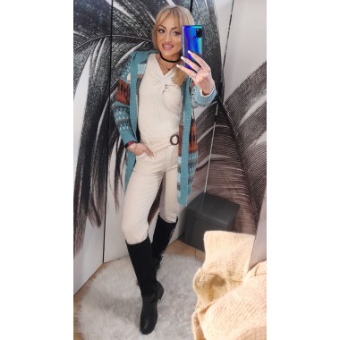 Cardigan lungo a fantasia | Desy Cardigan lungo misto lana pesante con bottoni, fantasia maculata con effetto peluche. Vestibilità morbida, taglia unica