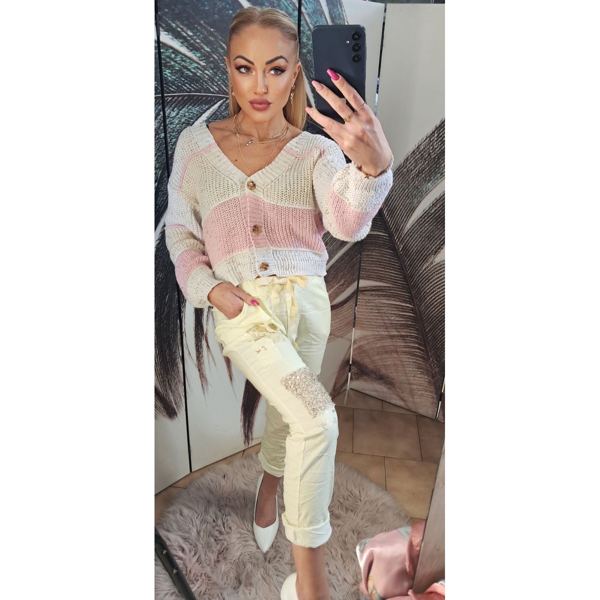 Mini cardigan a righe | Liana Mini cardigan a righe colorate in misto lana con scollo profondo a V e bottoni gioiello, vestibilità slim. Taglia unica