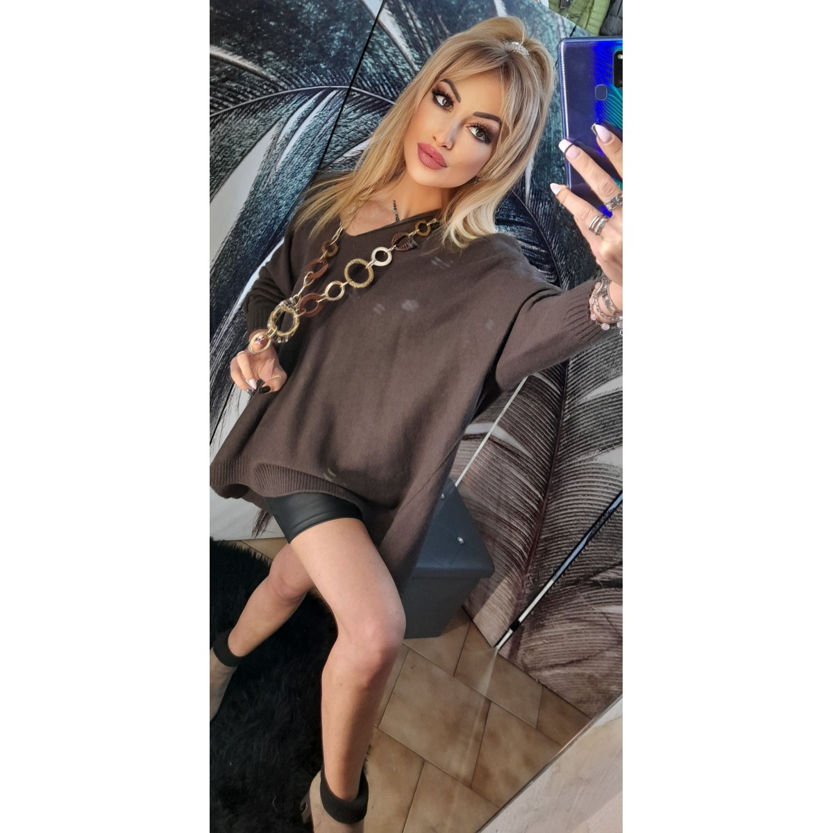 Maxi maglia in misto lana con scollo ampio a V, spalla scoperta, vestibilità morbida, disponibile in diversi colori moda. Taglia unica