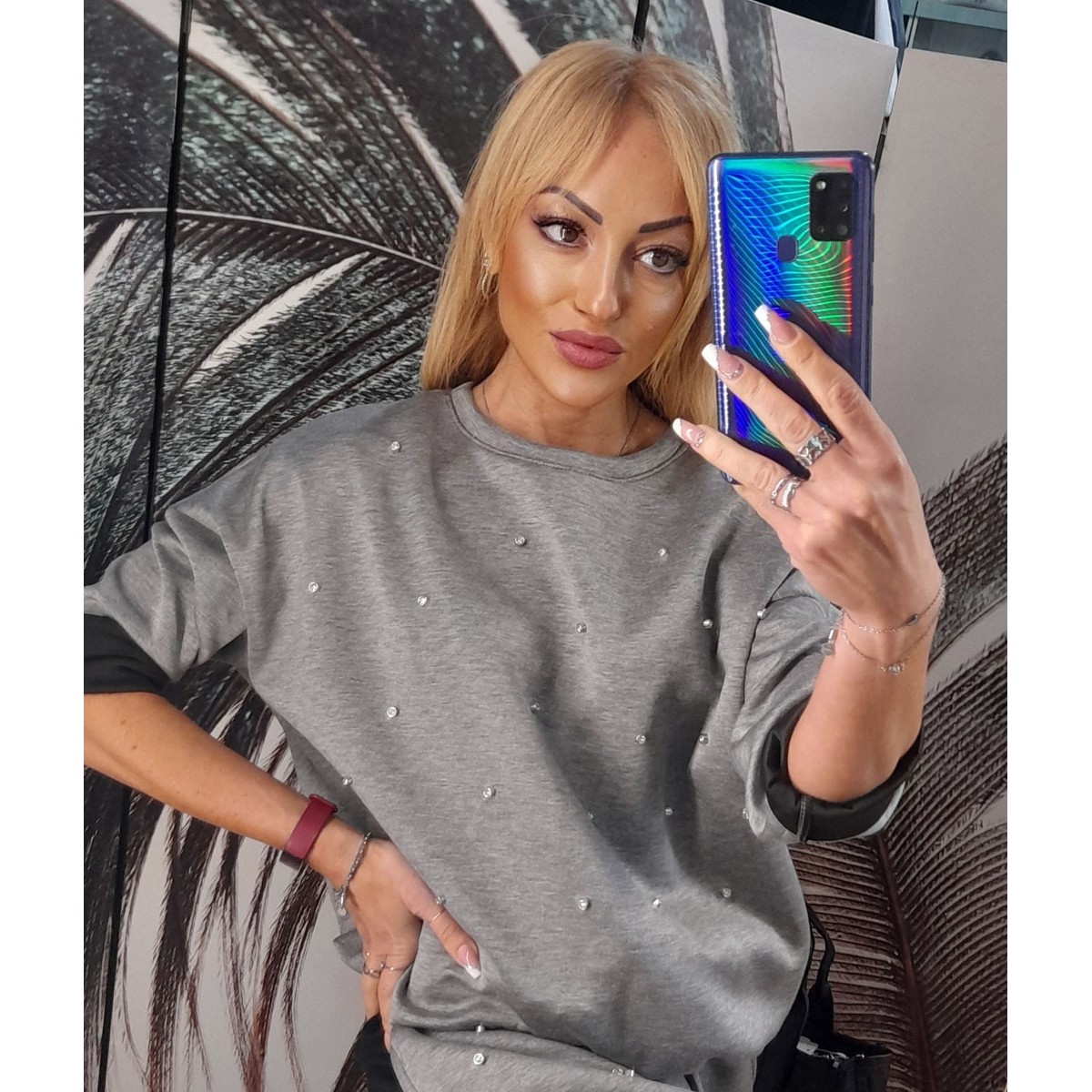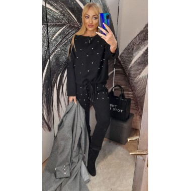 Tuta chic completa in neoprene con strass, felpa con scollo tondo e coulisse in vita, vestibilità slim. Taglia unica