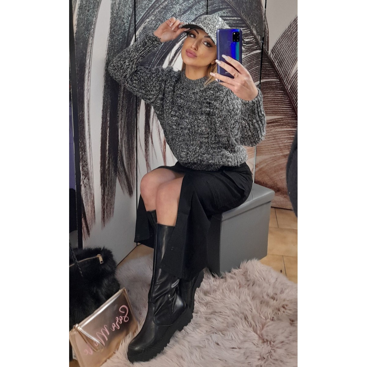 Maglione nero con cuoricini | Bella Maglione nero di lana con scollo a barchetta e dettagli luminosi a cuoricino, vestibilità slim. Perfetto per una serata elegante con una gonna a tubino. Taglia unica