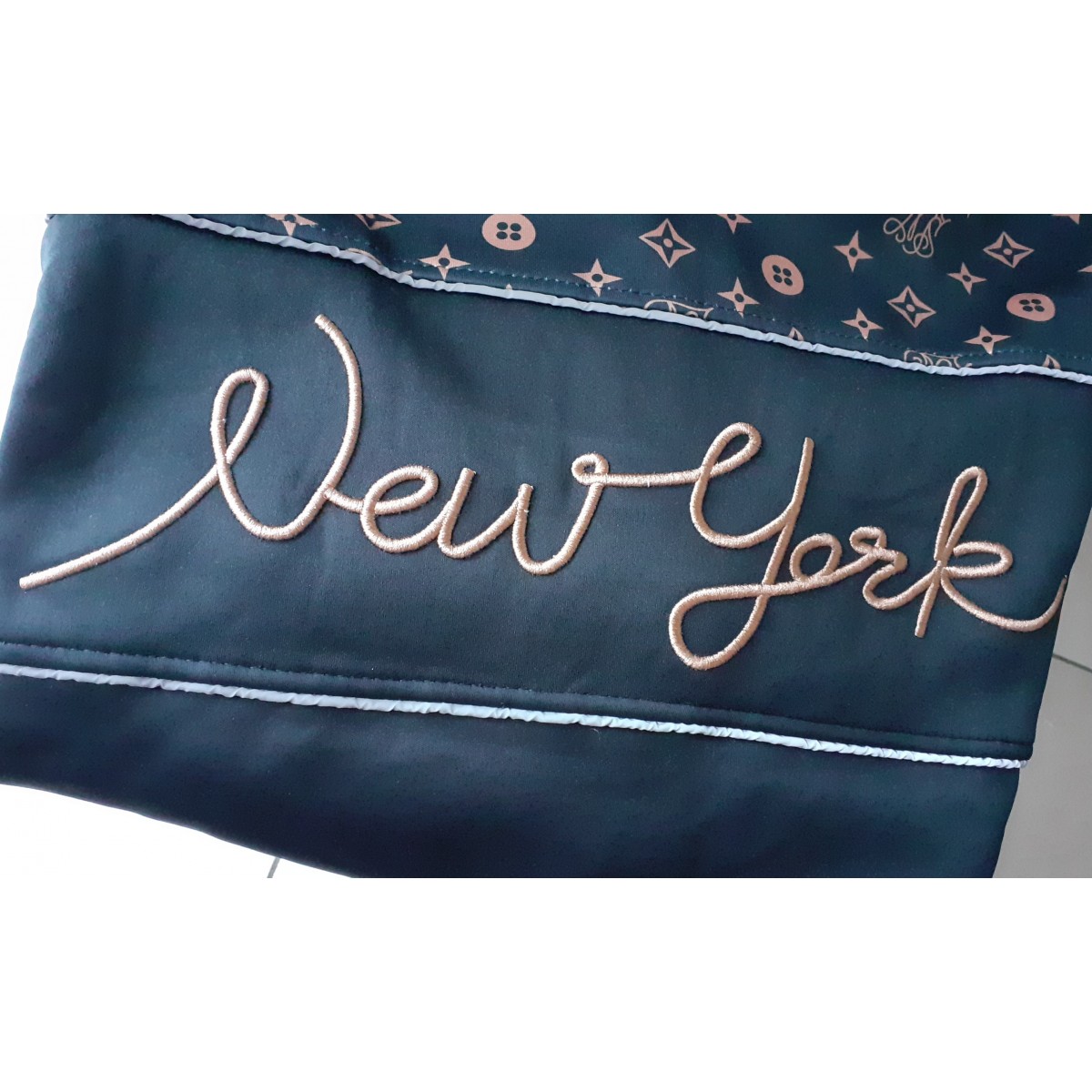 Felpa con cappuccio e tasconi laterali, stampa a fantasia con scritta "New York", vestibilità morbida. Taglia unica.