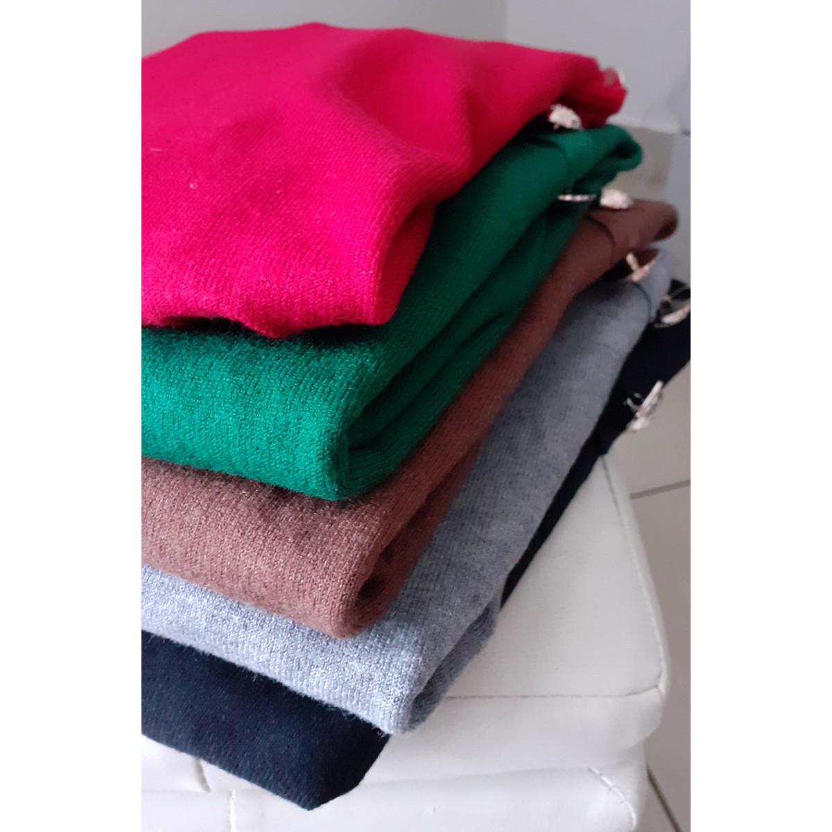 Maglioncino di lana con collo alto e bottoncini dorati da un lato, vestibilità aderente (disponibile in diversi colori). Taglia unica.