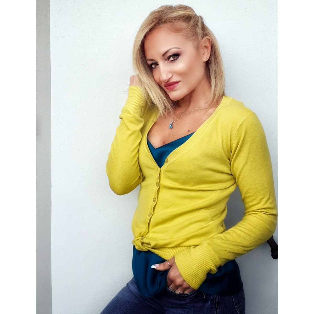 Maglioncino di lana aderente co scollo a V profondo e chiusura con bottoncini, vestibilità aderente. Taglia unica.