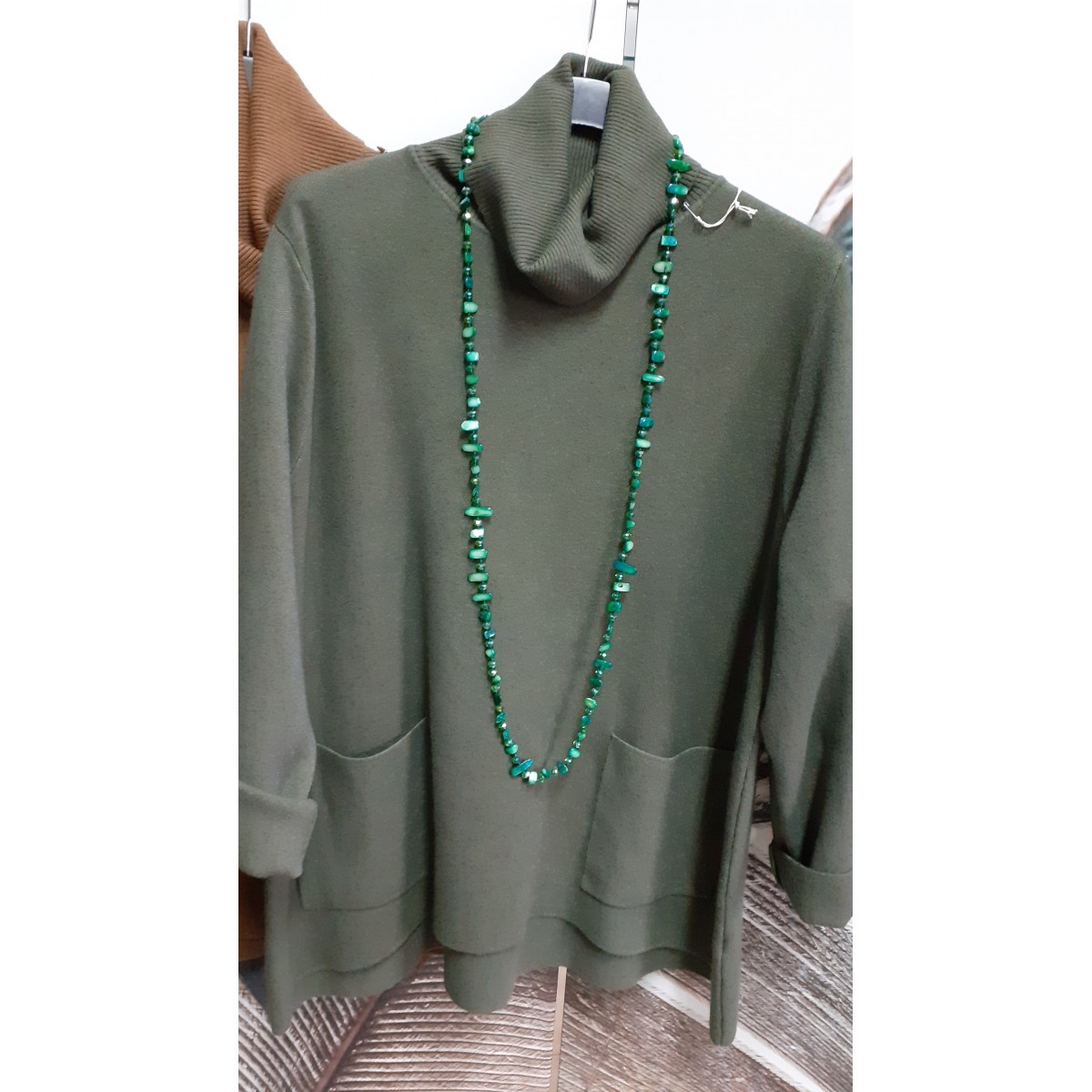 Maxi maglia di lana con collo alto e due tasconi laterali, vestibilità morbida. Taglia unica