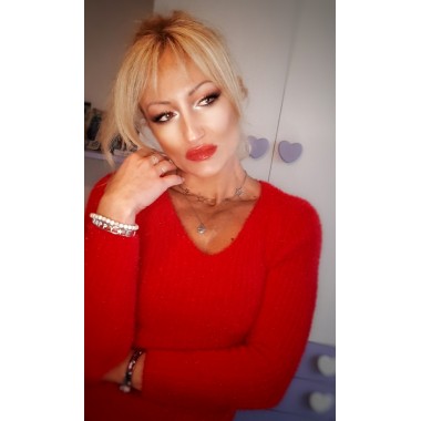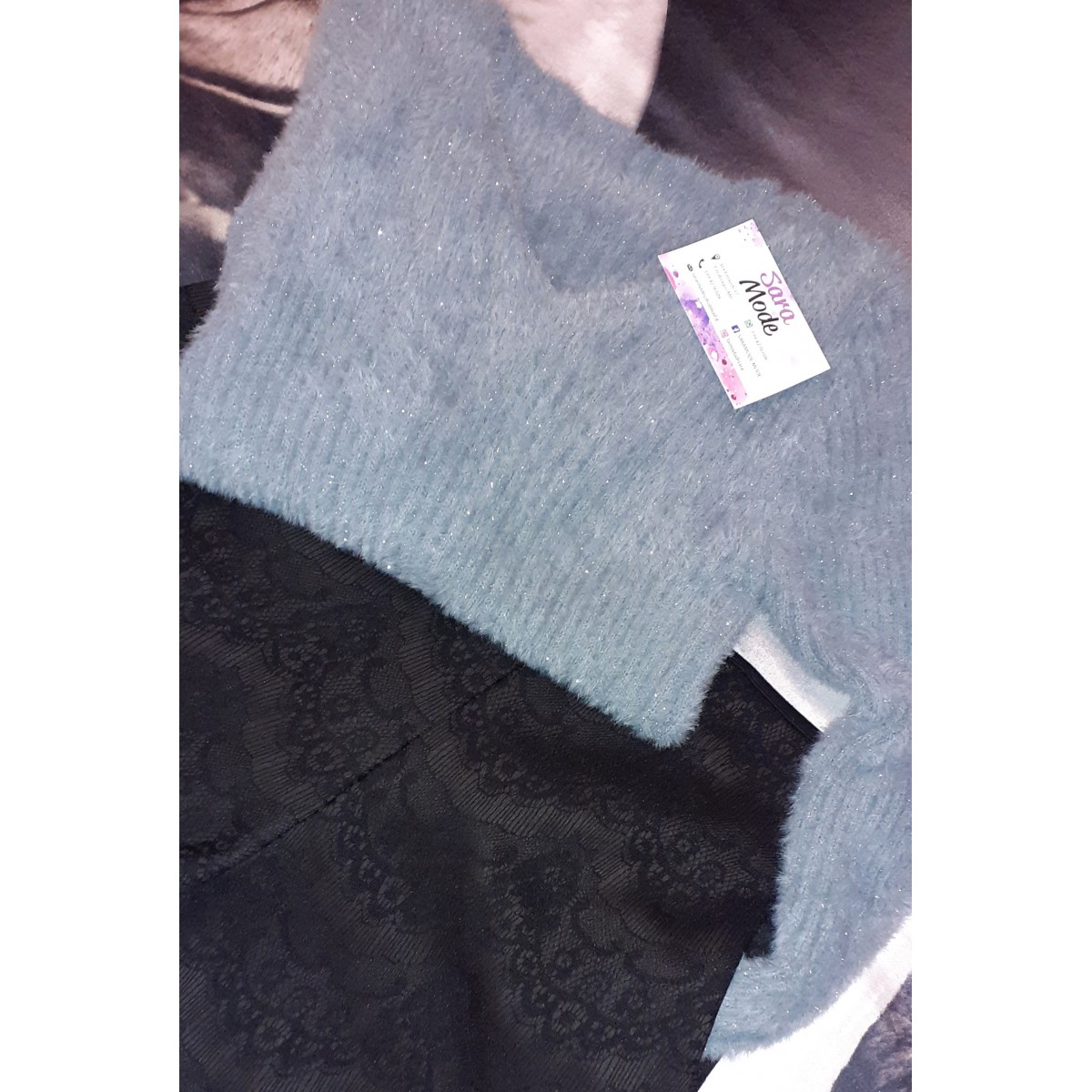 Maglione di lana peluche con scollo a V, vestibilità aderente, molto morbido al tatto. Perfetto da indossare con uno shorts corto o minigonna. Taglia unica
