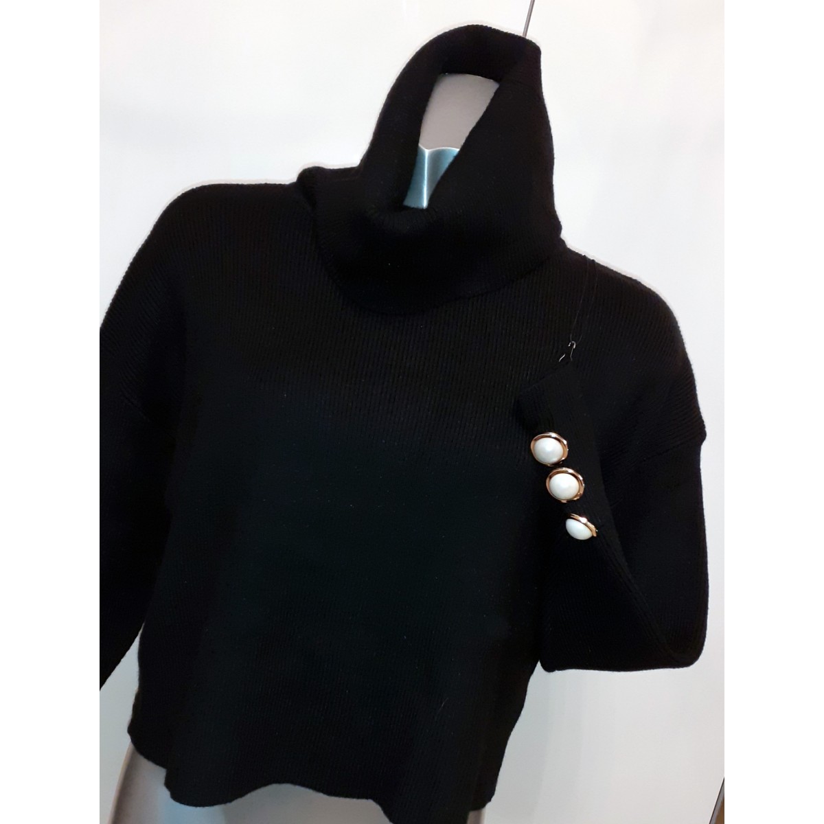 Maglione a collo alto con costine, lunghezza standard, vestibilità morbida. Rendono elegante e chic questo articolo, i 3 bottoni bianchi con bordo dorato cuciti sulle maniche. Taglia unica