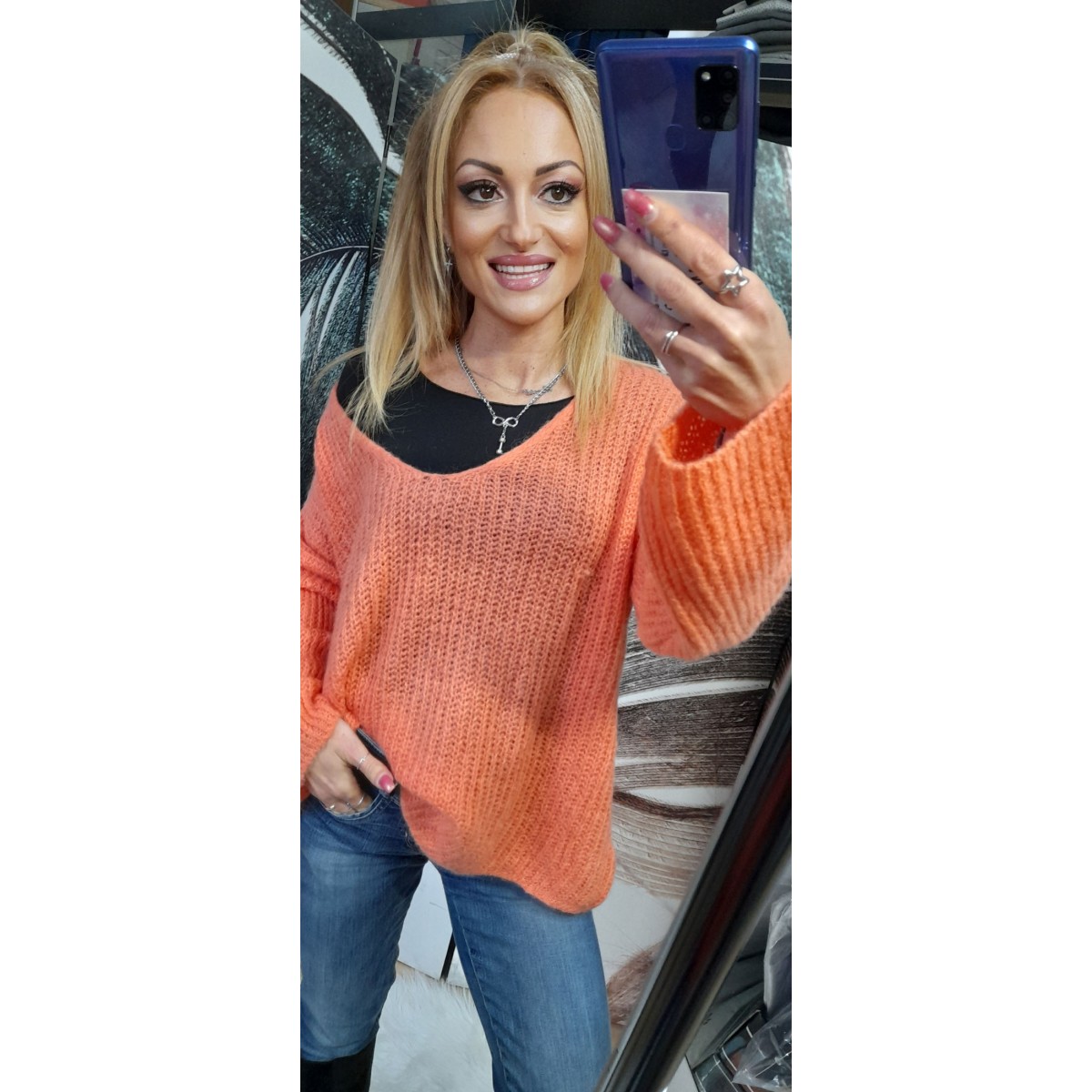 Maglioncino aderente effetto peluche | Cindy Maglioncino aderente effetto peluche con scollo tondo, lunghezza standard. Taglia unica