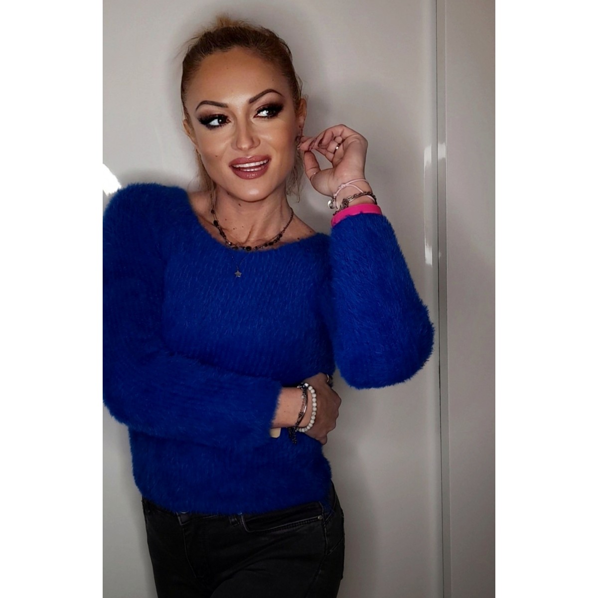 Maglione di lana peluche aderente scollo a V | Silviabis Maglione di lana peluche con scollo a V, vestibilità aderente, molto morbido al tatto. Perfetto da indossare con uno shorts corto o minigonna. Taglia unica