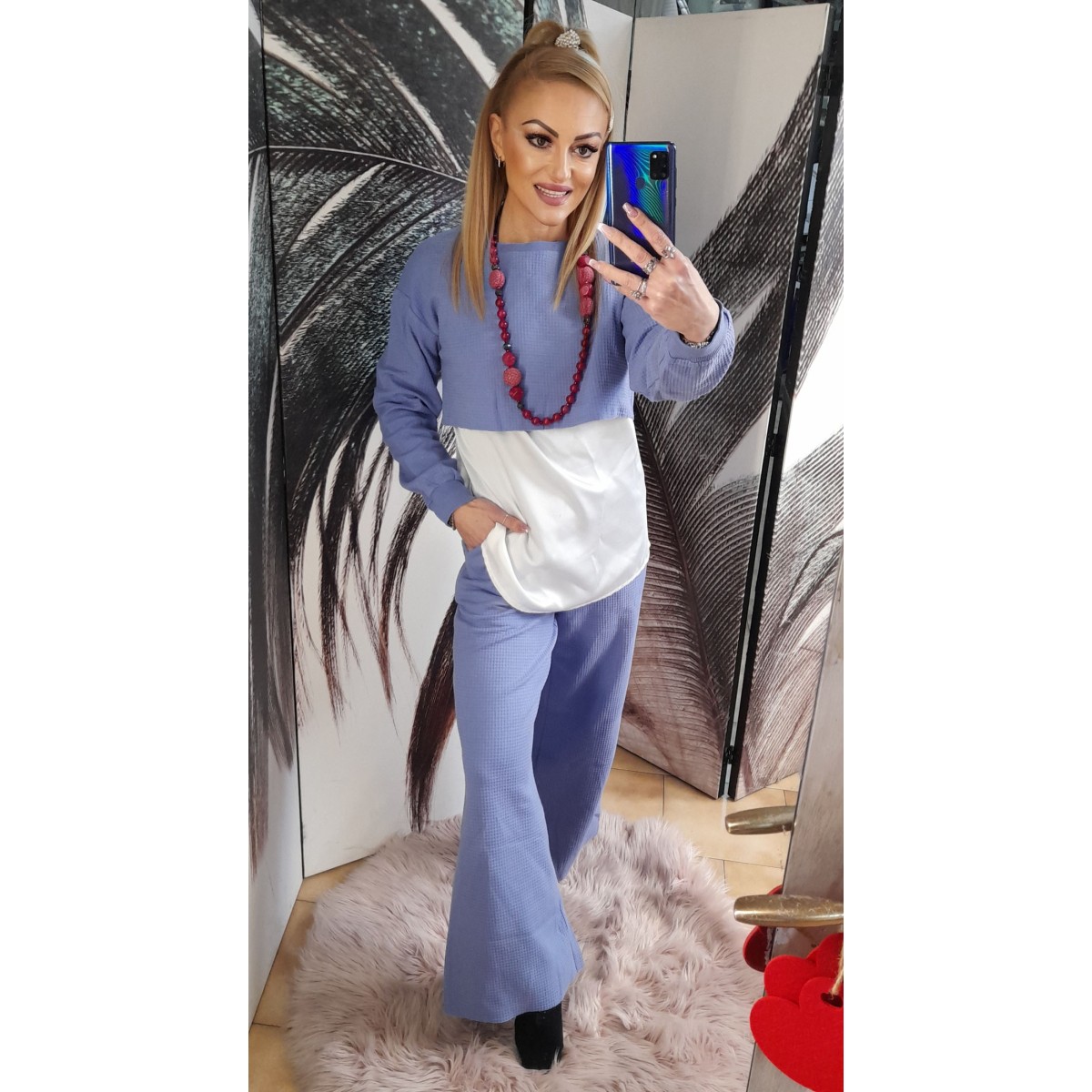 Tuta completa elegante misto lana | Martina Tuta elegante chic in misto lana con pantalone morbido modello campana e mini pull con scollo tondo, vestibilità morbida. Taglia unica