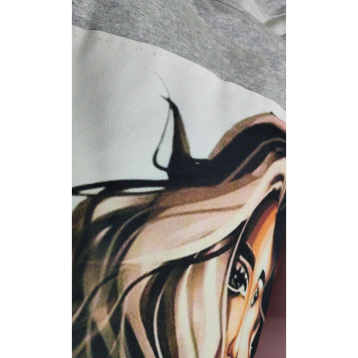 Felpa di cotone garzato con cappuccio, maniche trequarti, con dettaglio della cerniera cucita per l'intera lunghezza del cappuccio, media lunghezza. La felpa si presenta corta davanti e leggermente più lunga dietro. Taglia unica vestibilità morbida. Si presta per differenti stagioni.