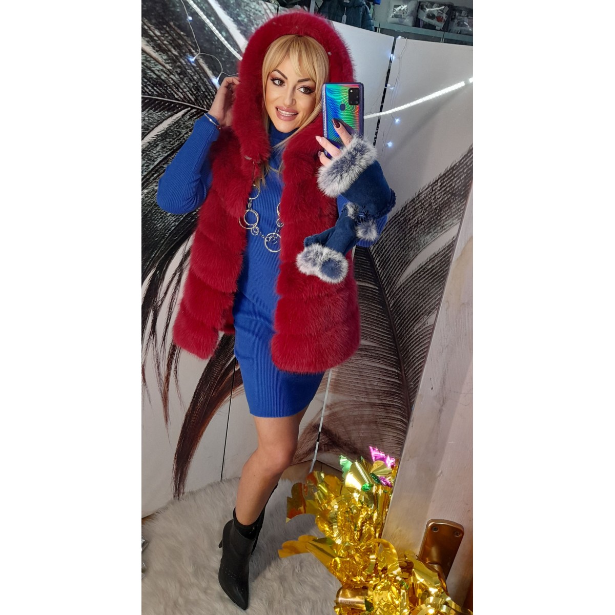 Pellicciotto smanicato con cappuccio | Susy Smanicato in eco-pelliccia con cappuccio e cerniera, vestibilità slim. Taglia unica