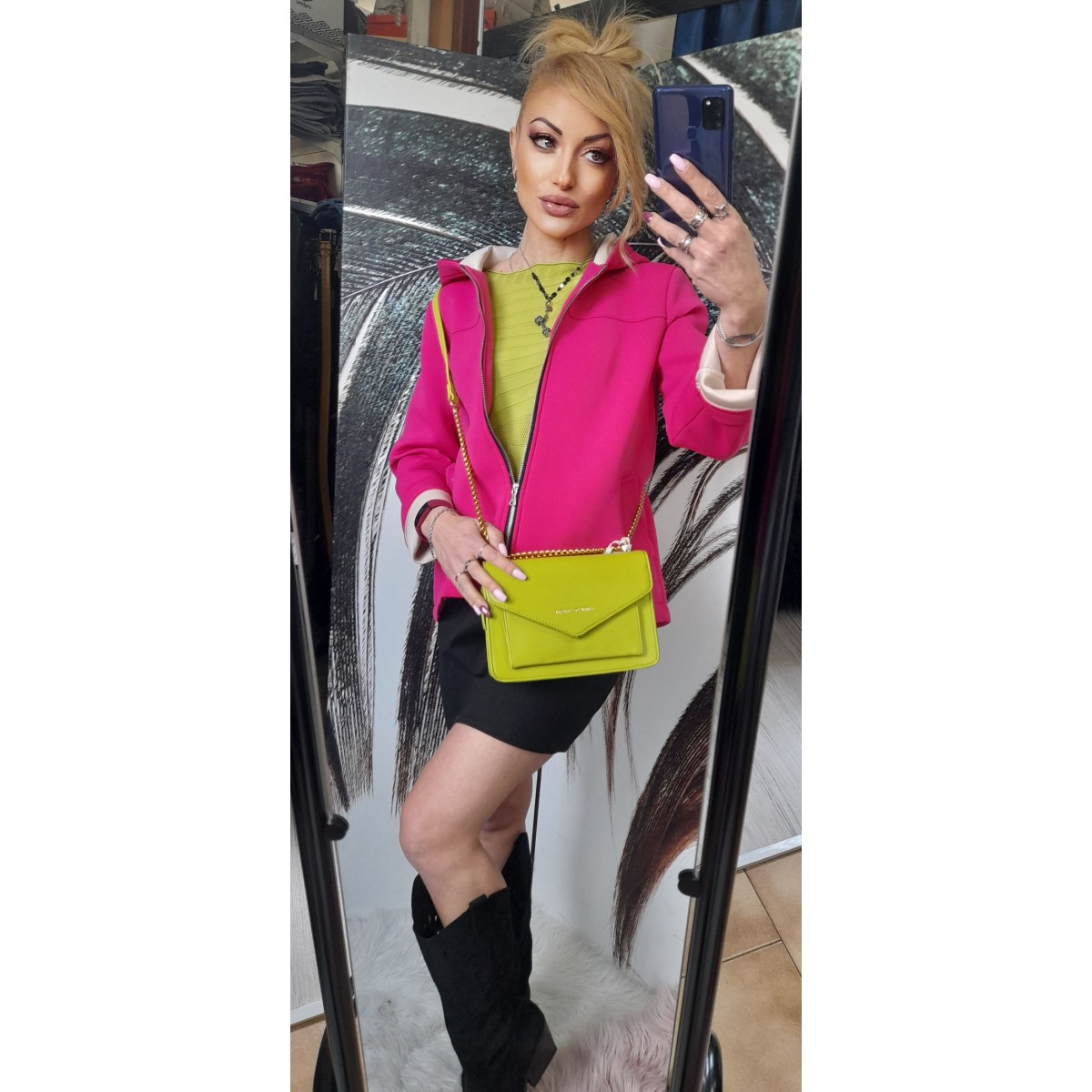 Completo giacca e pantalone a fantasia geometrica | Genny Completo giacca a tre quarti foderata con bottoni e due finte tasche laterali, pantalone a sigaretta con due tasche a fantasia geometrica, modello molto particolare e chic. Taglia unica S/M