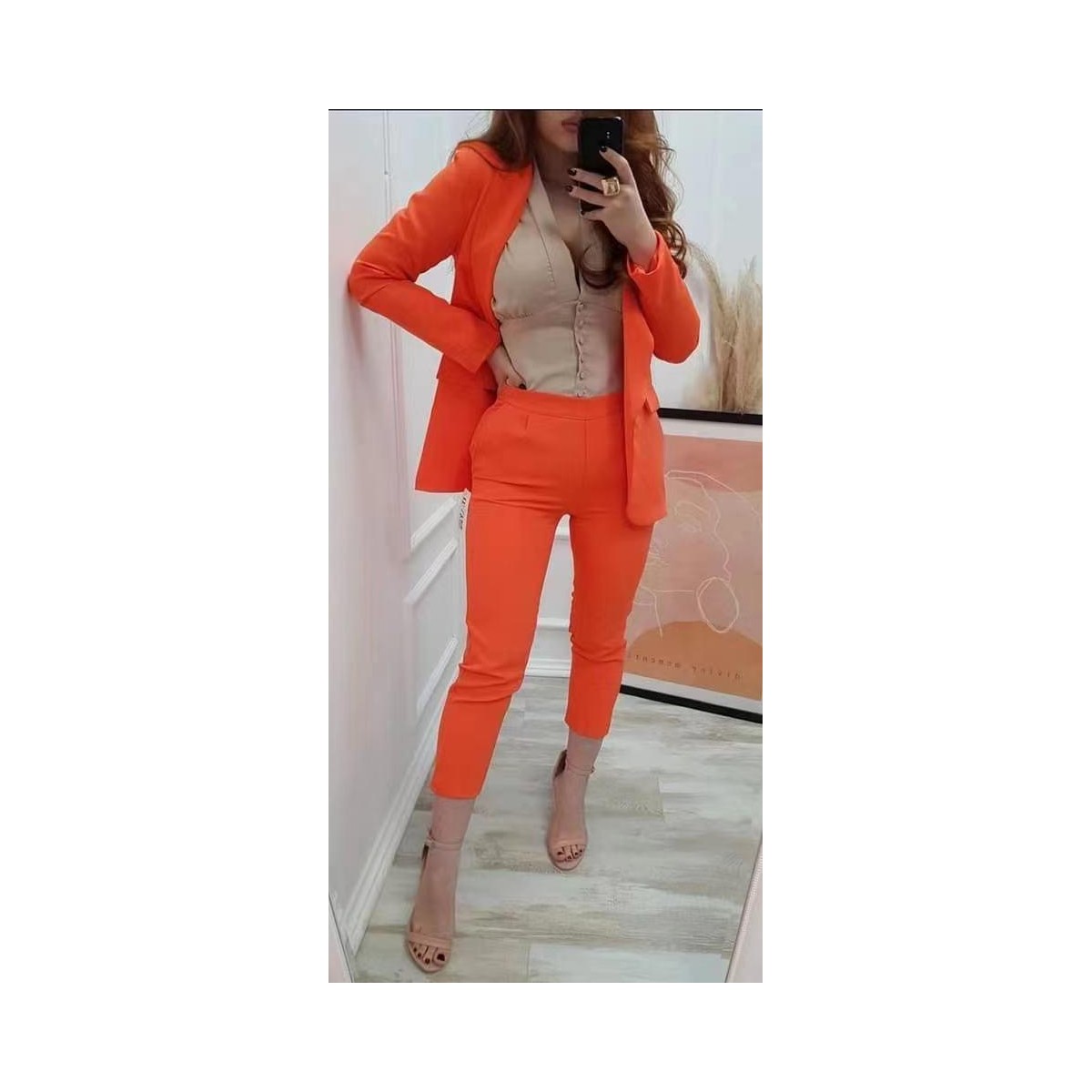 Completo in viscosa composto da giacca e pantalone a sigaretta, vestibilità slim, modello molto chic ed elegante. Taglia unica