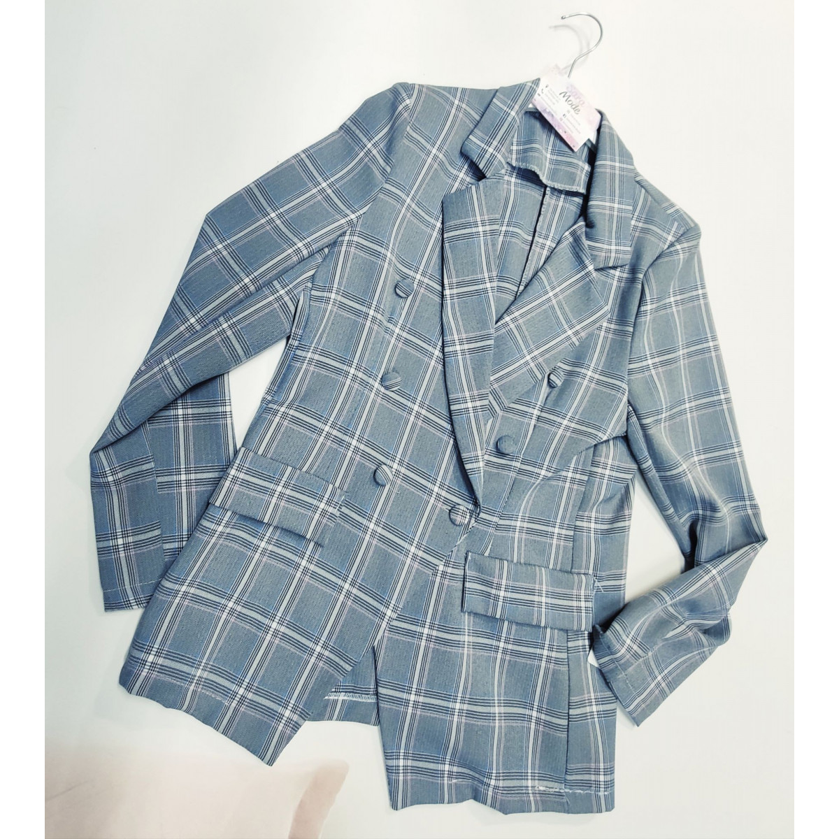 Giacca doppio petto con taglio francese e doppio bottoni. Dettaglio della tasca per bilanciare la giacca. Fantasia a quadri, primaverile disponibile in base beje e grigia. Ideale per un look elegante e chic.