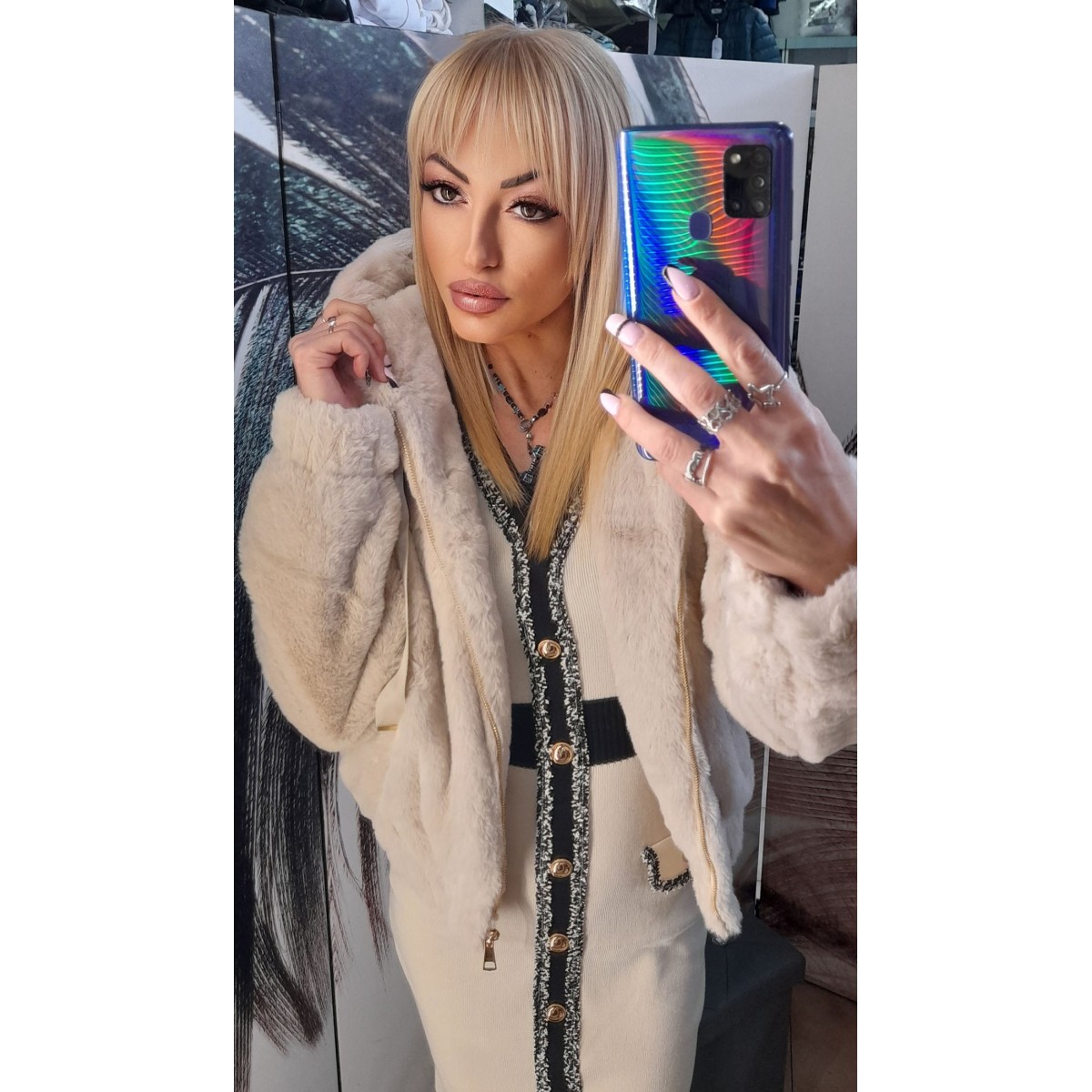 Pellicciotto corto con cappuccio e tasche laterali, chiusura con cerniera, vestibilità morbida per un look chic ed elegante. Taglia unica