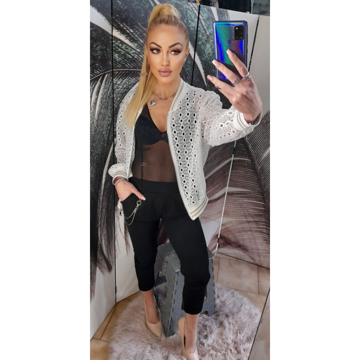 Giubbino in similpelle con cerniera, scollo a punta con colletto, bottoni sulle spalle, doppia cucitura a fondo. Ideale per le stagioni autunno e primavera, versatile, in caso di abbigliamento elegante sdrammatizza l'outfit, in caso di un casual valorizza il look.
