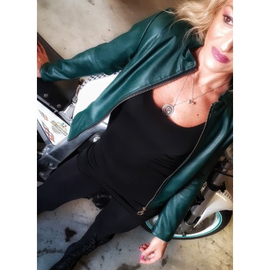 Giubbino similpelle con bottoni | Cecilia Giubbino in similpelle con cerniera, scollo a punta con colletto, bottoni sulle spalle, doppia cucitura a fondo. Ideale per le stagioni autunno e primavera, versatile, in caso di abbigliamento elegante sdrammatizza l'outfit, in caso di un casual valorizza il look.