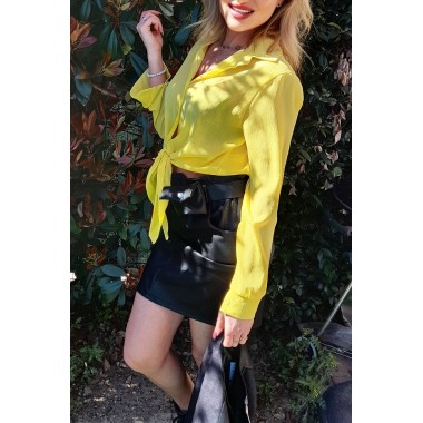 Minigonna similpelle con borchie | Cica Minigonna similpelle modello a portafoglio con piccole borchie e fiocco laterale tono su tono.