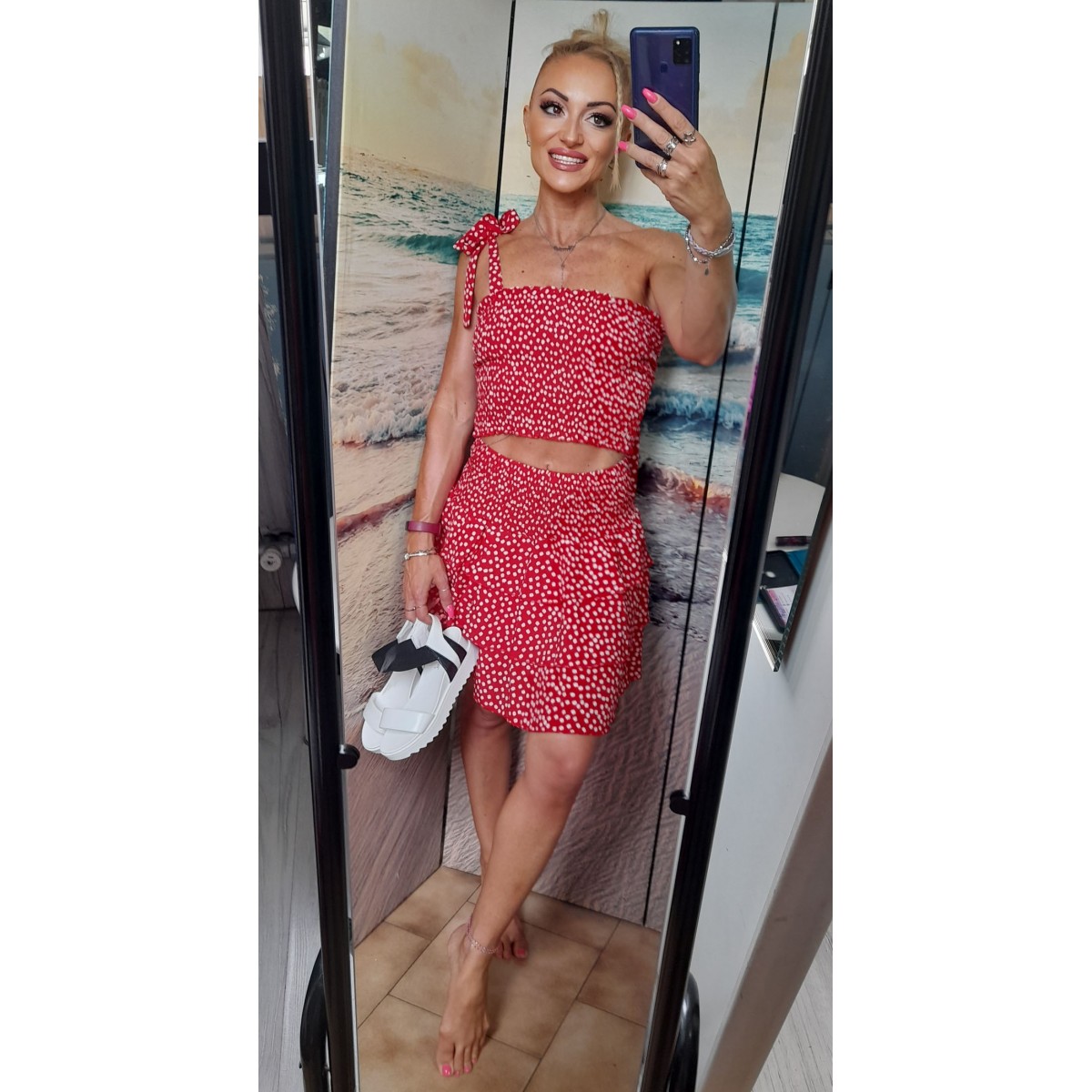 abbina la gonnellina a portafoglio al top corto della stessa fantasia (vedi Accessori).