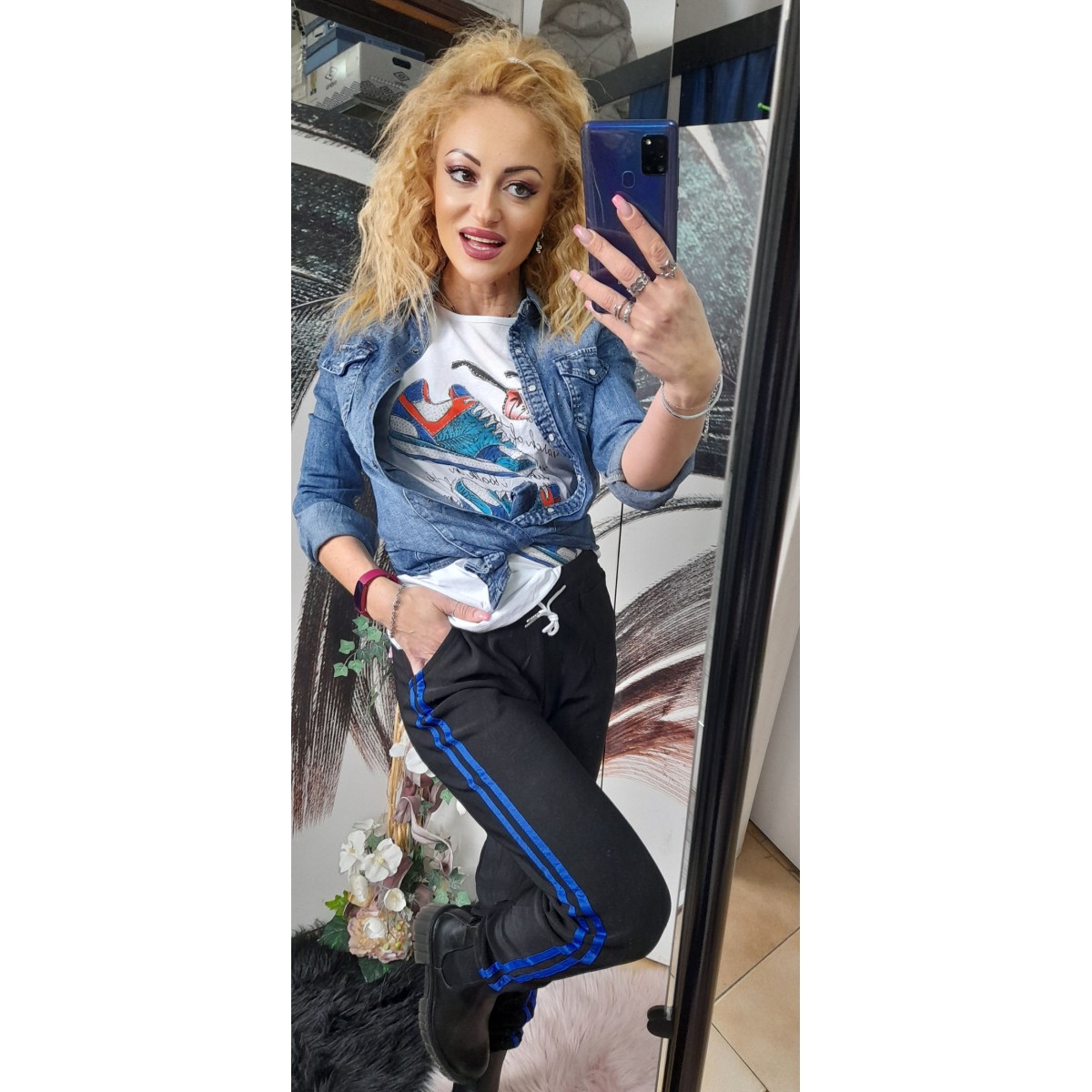 Pantalone sportivo con bande laterali | Jessica Pantalone sportivo con due bande laterali bianche, due tasche ed elastico in vita, vestibiltà morbida. Taglia unica
