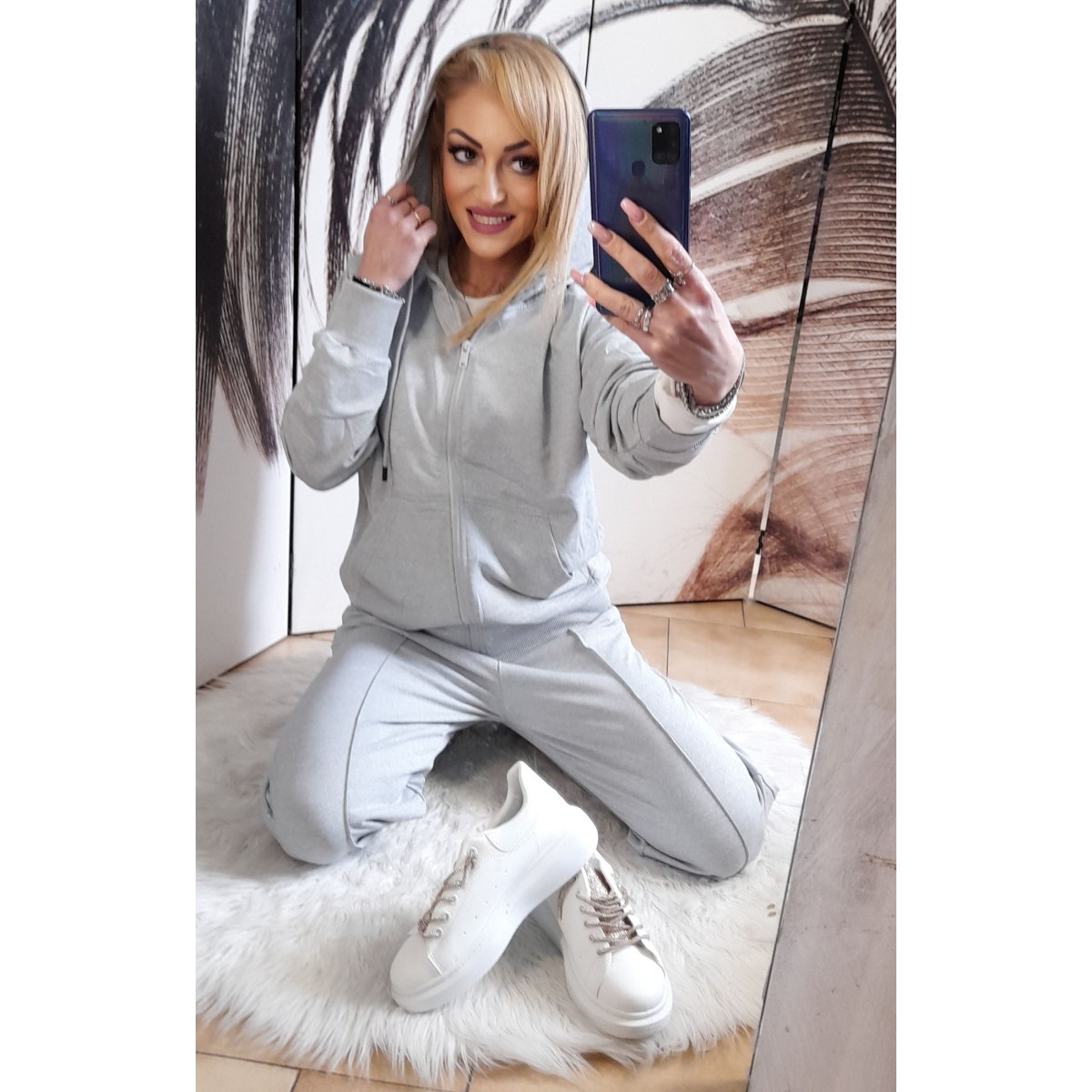Tuta elegante con glitter | Susy Tuta completa elegante con glitter composta da mini felpa con elastico in vita e cappuccio, pantalone aderente scampanato. Taglia unica