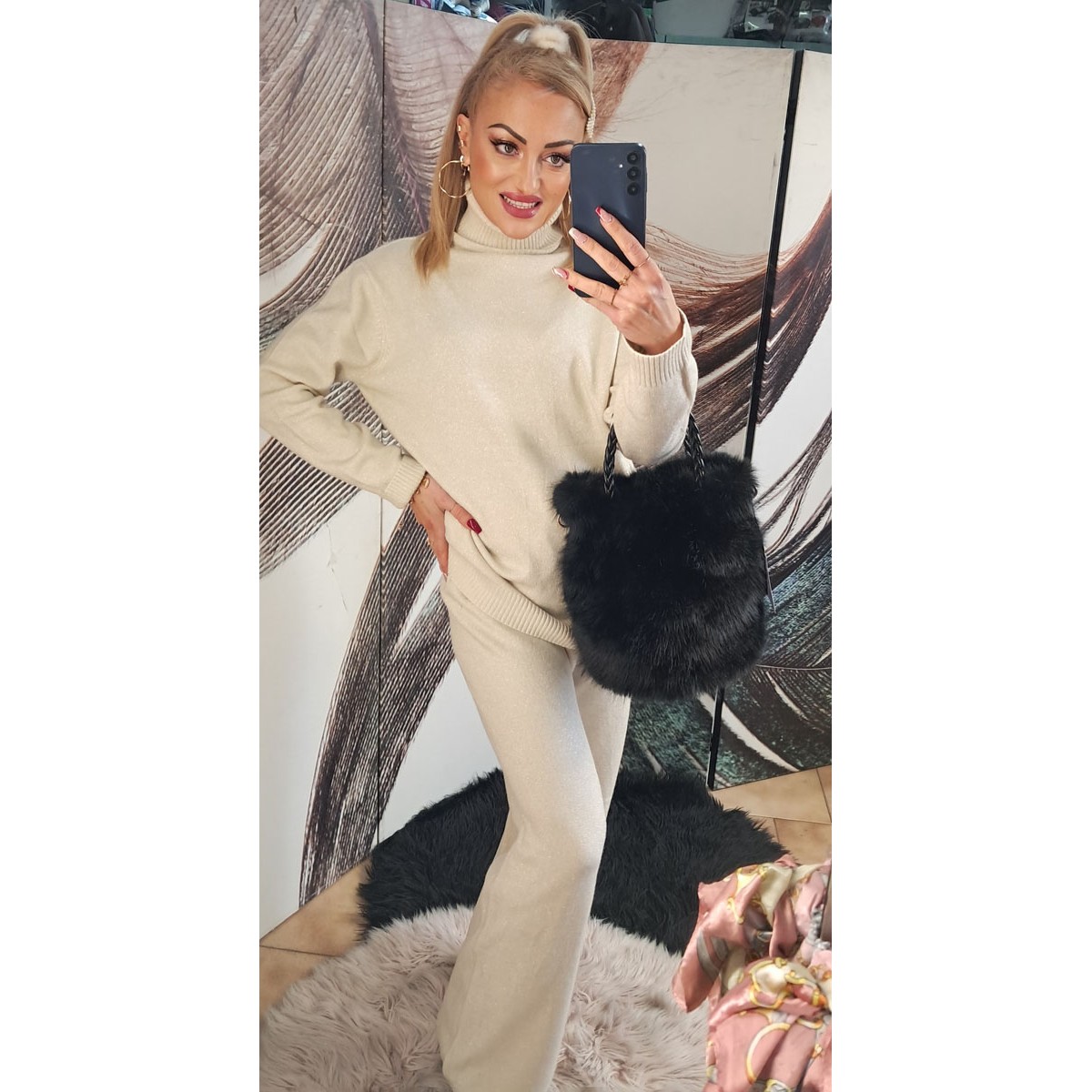 Completo di lana sportivo con maglione dolcevita e pantalone con coulisse, vestibilità morbida. Taglia unica