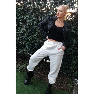 Pantaloni sportivi di cotone pesante con elastico in vita ed alla caviglia, due tasche laterali, vestibilità morbida. Taglia unica