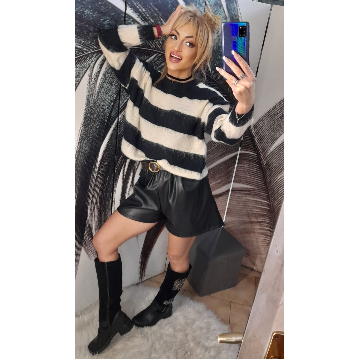 Shorts in similpelle con due tasche laterali, vestibilità morbida, cintura in vita. Taglia unica