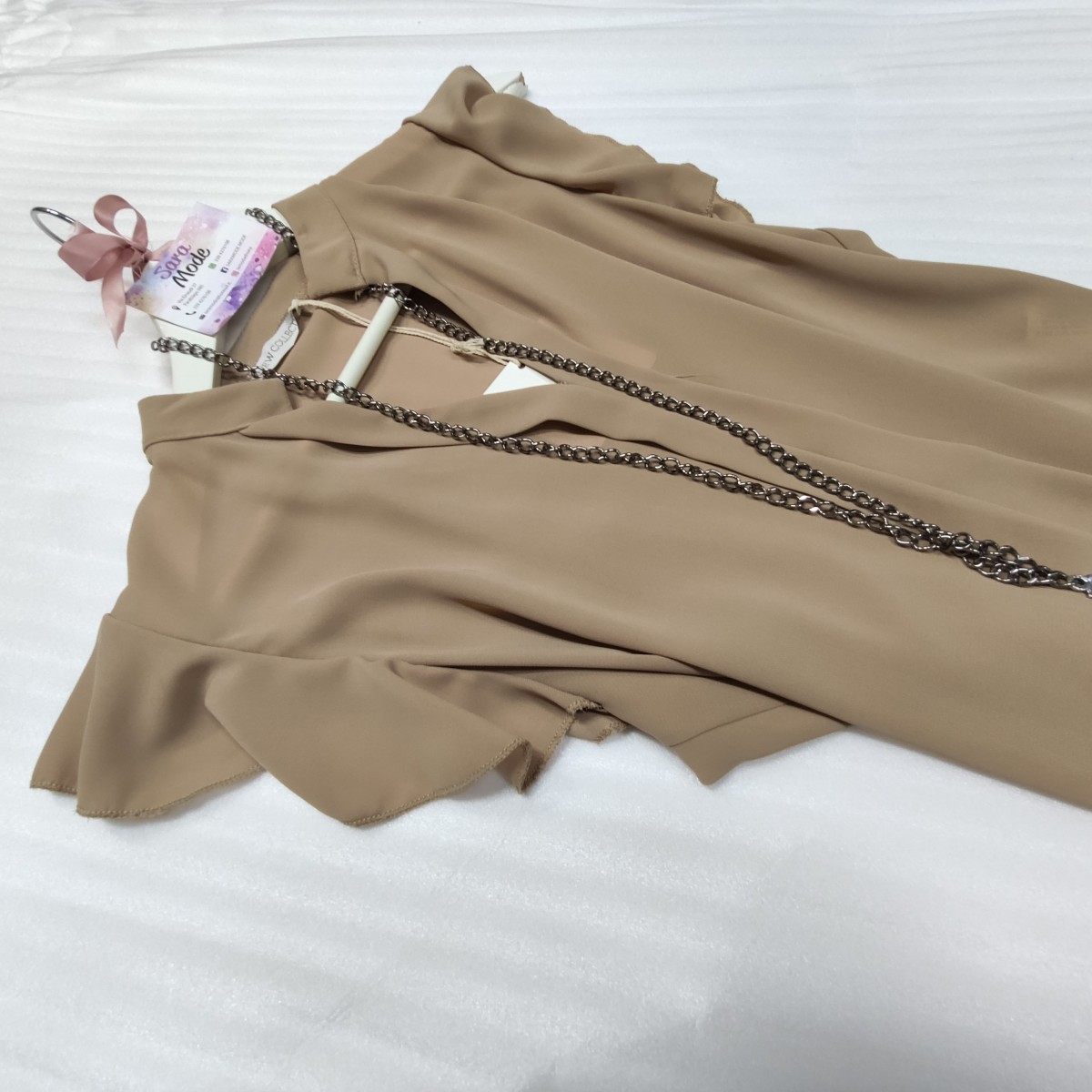 Sottogiacca o smanicato realizzato in viscosa ideale per le stagioni più calde. Scollatura a V profonda, taglio collo coreana. Il capo si presenta lineare ed elegante in base a come verrà abbinato. La collana non è inclusa nel prezzo.