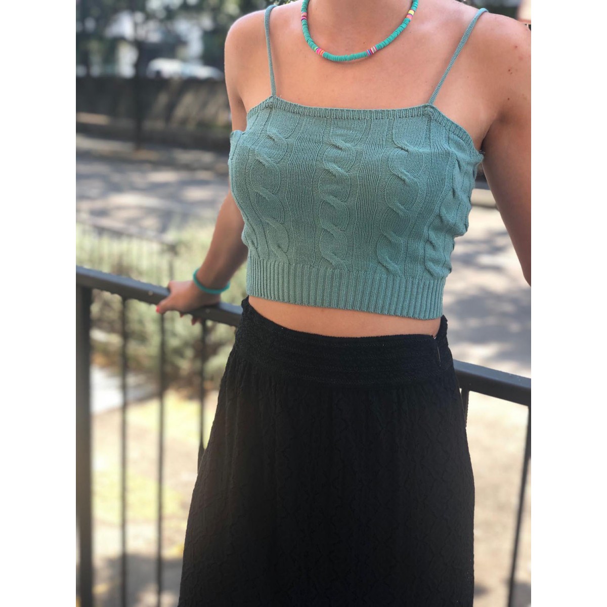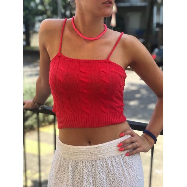 Top corto tinta unita in cotone elasticizzato con lavorazione a trecce, scollo quadrato con spalline sottili, vestibilità aderente. Taglia unica.