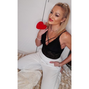 Top di pizzo con coppe imbottite, tessuto elasticizzato per una vestibilità aderente, spalline sottili. Modello sexy e audace, perfetto anche come sotto-giacca per un perfetto San Valentino.