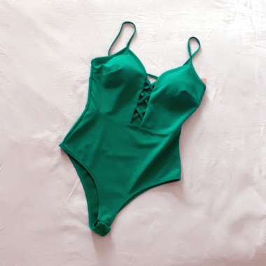 Body con spalline sottili e coppe imbottite dal taglio sexy ed originale, dettaglio sul seno e scollatura profonda, tessuto elasticizzato. Taglia unica.