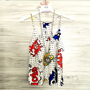 Sottogiacca o canotta realizzata in viscosa, con scollatura a V e taglio americano sul retro. La canotta chic può essere indossata sempre indipendentemente dalla stagione, sola o come sottogiacca ha una marcia in più. La collana non è inclusa nel prezzo.