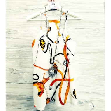 Top canotta con paillette di due colori arancio e azzurro, il retro beige in tessuto leggero trasparente, spalline molto sottili, scollo a V profondo. Vestibilità morbida - Taglia Unica.Il taglio di questo bellissimo modello mette in risalto le spalle e la schiena. Perfetto per un evento chic oppure per una serata elegante.