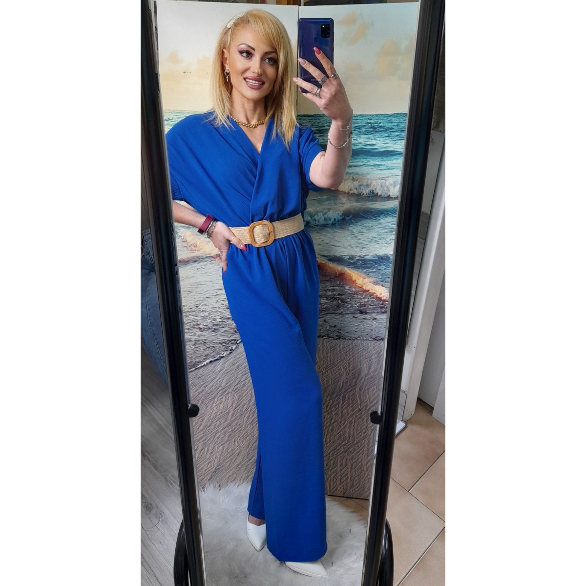 Tuta intera elegante con ampia scollatura, spalla larga, tasche laterali, vestibilità molto morbida regolabile con cintura. Taglia unica
