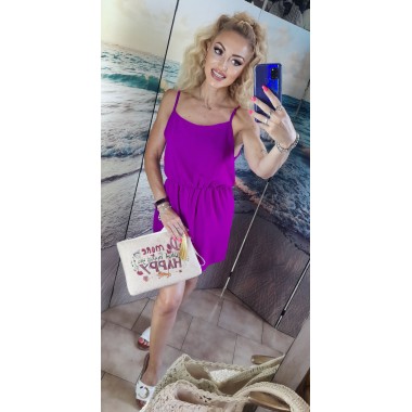 Tutina corta in cotone leggero con spalline sottili e scotto tondo profondo. La parte sul decolleté è caratterizzata da ricami e decori multicolori. Taglia unica.