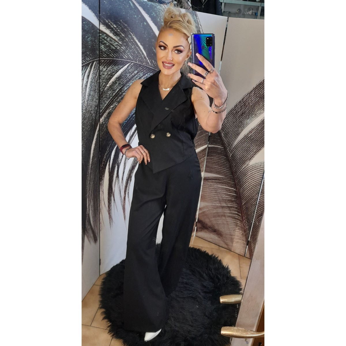 Tuta intera in cotone smanicata, modello elegante perfetta per cerimonia, scollo profondo a V, vestibilità slim. Taglia unica